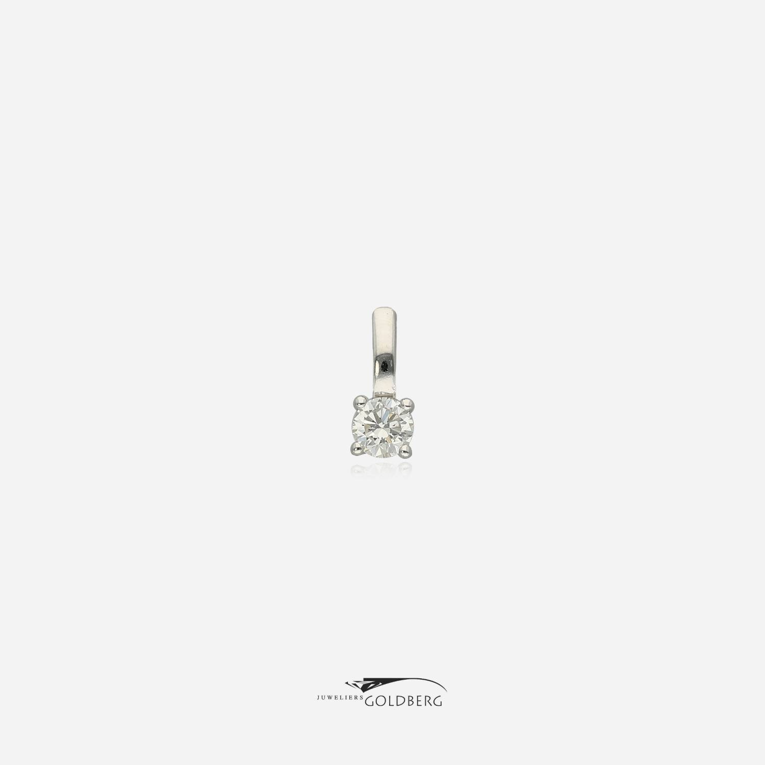 This refined silver pendant by Gisser features a brilliant-cut lab-grown diamond in an elegant four-prong setting. The pendant is rhodium-plated, giving the silver a bright, white sheen that beautifully accentuates the diamond's brilliance. Enjoy the luxurious look of a diamond at a fraction of the price. Interested in this stunning piece? Feel free to visit us or contact us to discuss the possibilities!