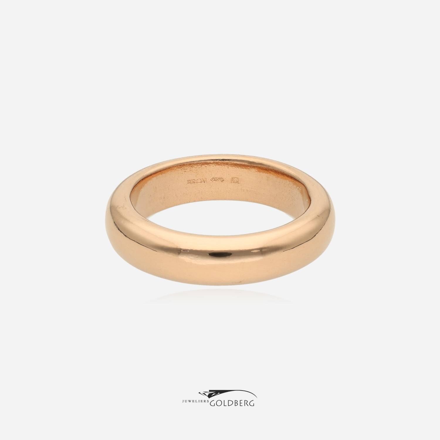 Een mooie pre-owned trouwring van 18k rosegoud in een klassiek en standaard ringband model. De warme roségouden kleur geeft de ring een tijdloze en subtiele elegante uitstraling, waardoor dit model perfect is als trouwring of als dagelijks sieraad. Deze ring is ca. 5,4 mm breed en heeft een comfortabele, solide afwerking.