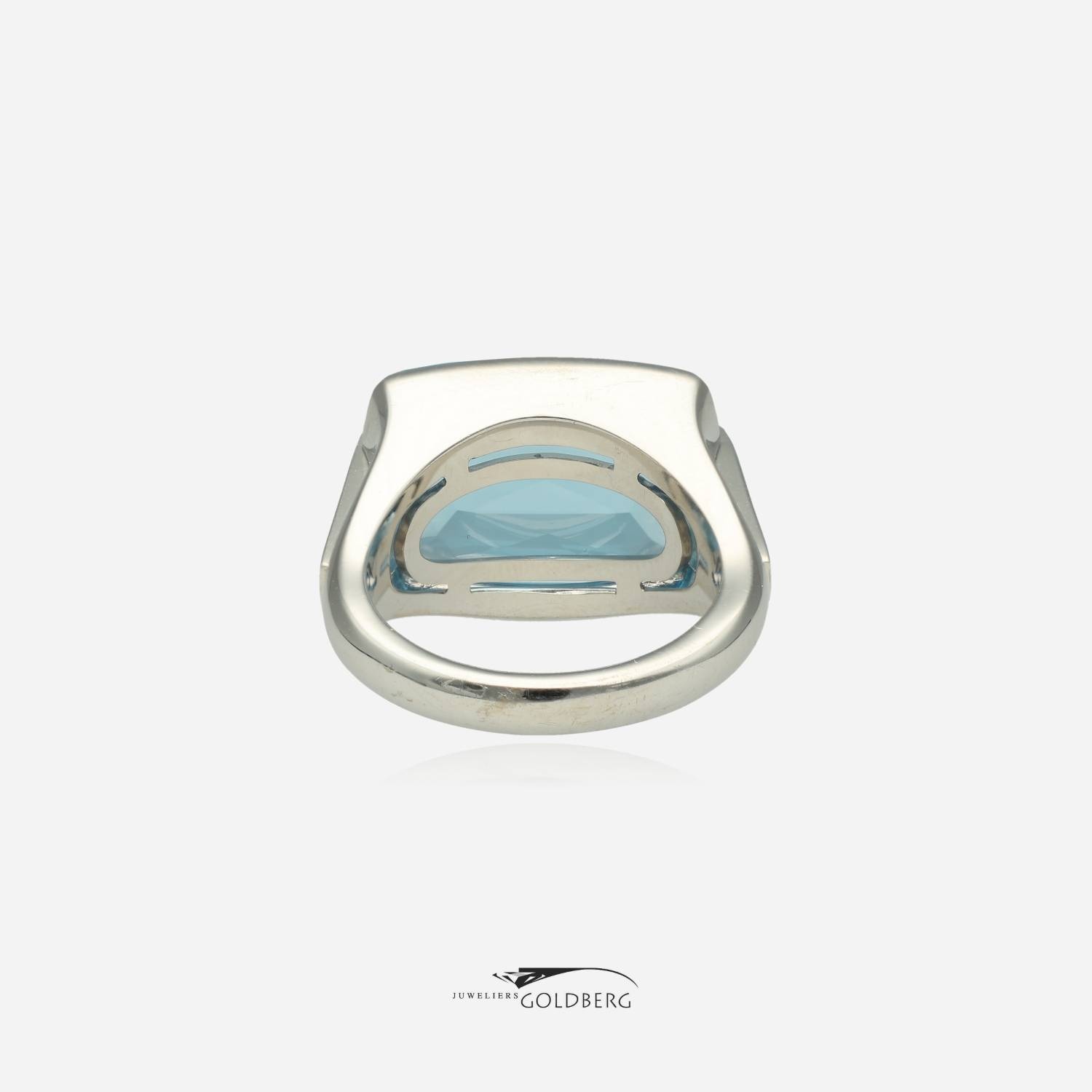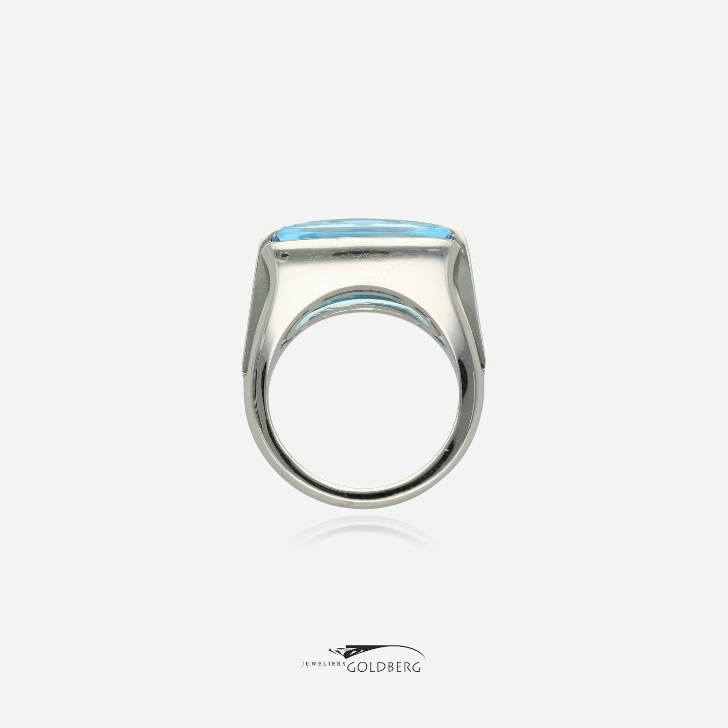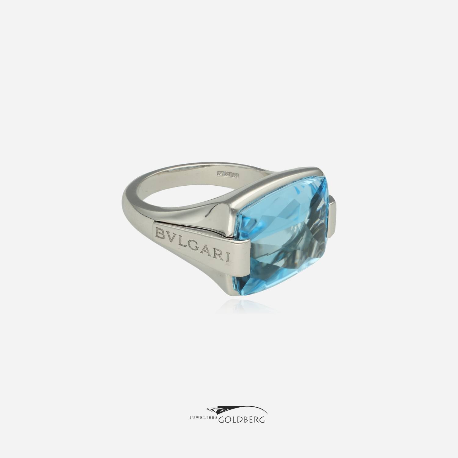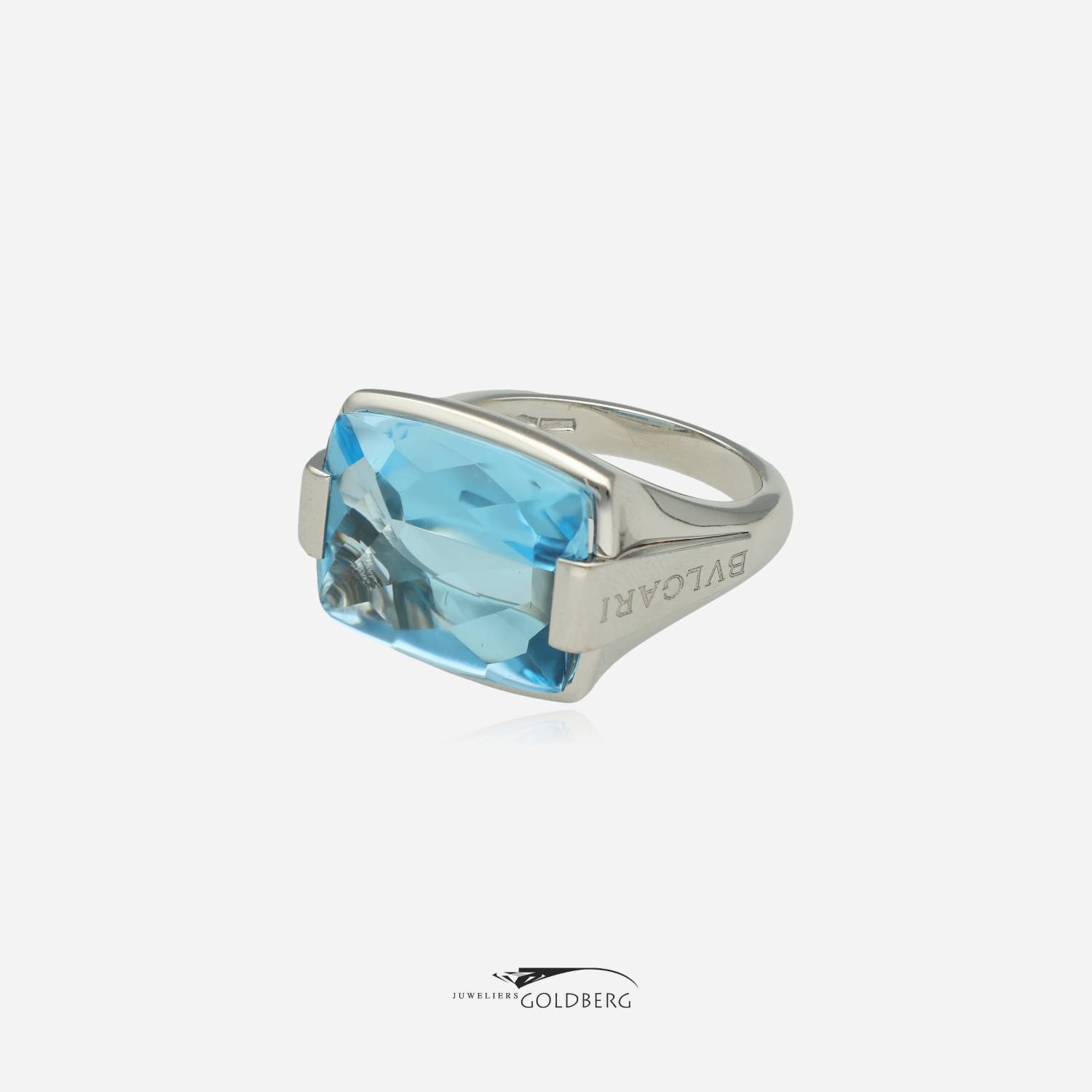Een prachtige 18k witgouden vintage Bulgari ring met een hemelsblauwe topaas. Bulgari heeft bij deze ring zoals te zien op de foto's gekozen voor een prachtige heldere topaas. Deze ring is ca. 14 mm breed aan de bovenkant en ca. 3 mm aan de onderkant. Bent u nou geïnteresseerd in dit pracht sieraad, kom dan gerust langs of neem contact op om de mogelijkheden te bespreken!